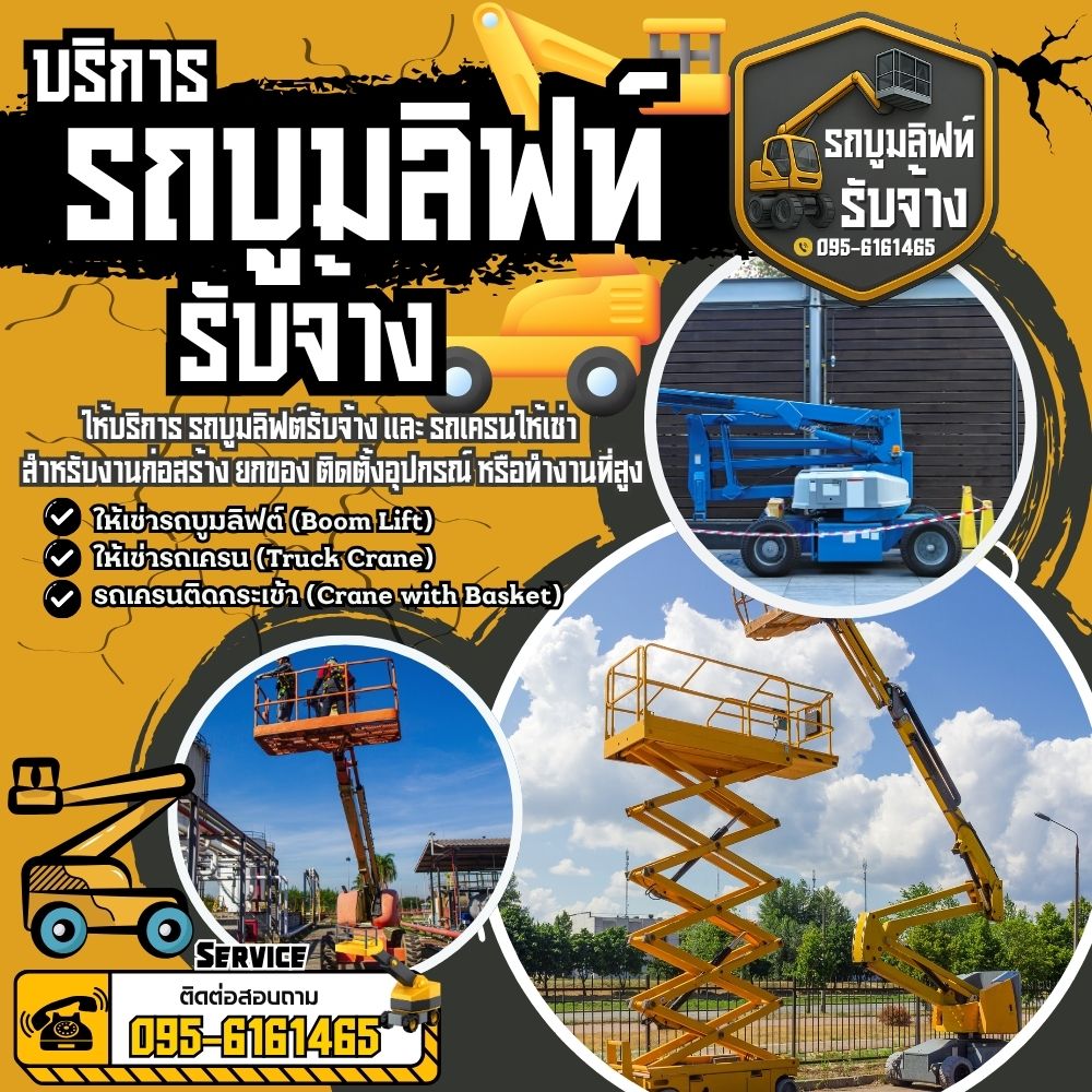 ให้บริการรถบูมลิฟต์รับจ้าง และ รถเครนให้เช่า สำหรับงานก่อสร้าง ยกของ ติดตั้งอุปกรณ์ หรือทำงานที่สูง ด้วยรถคุณภาพสูงและทีมงานมืออาชีพ